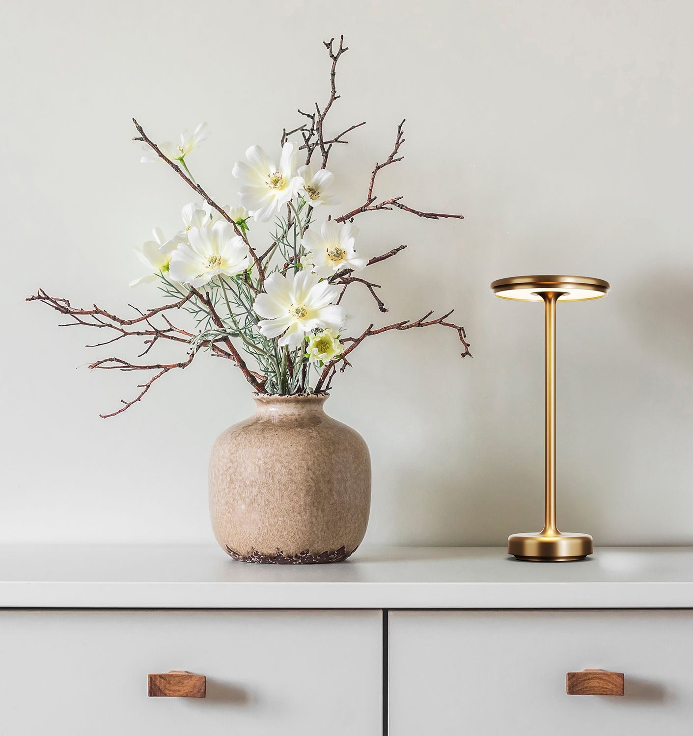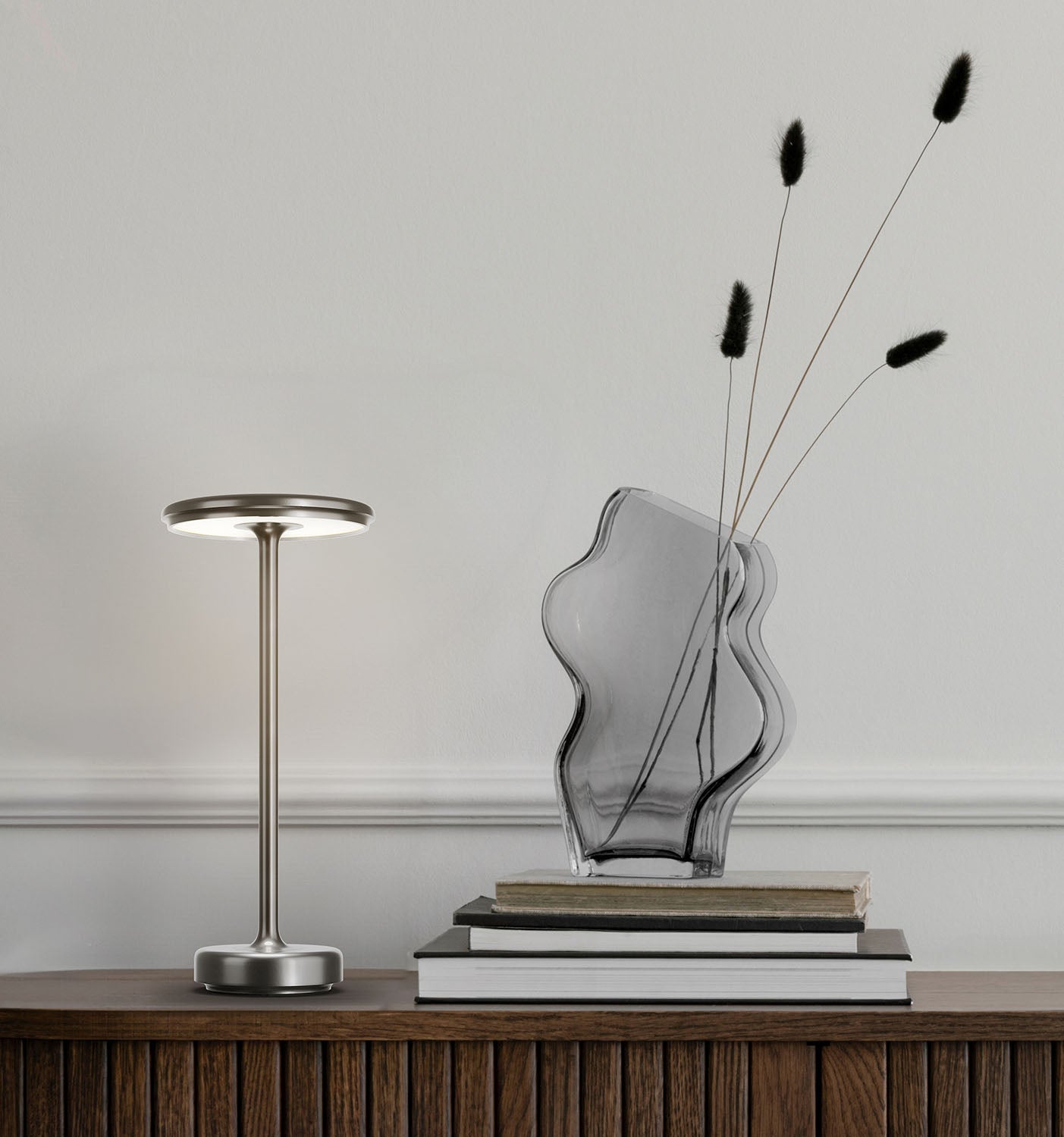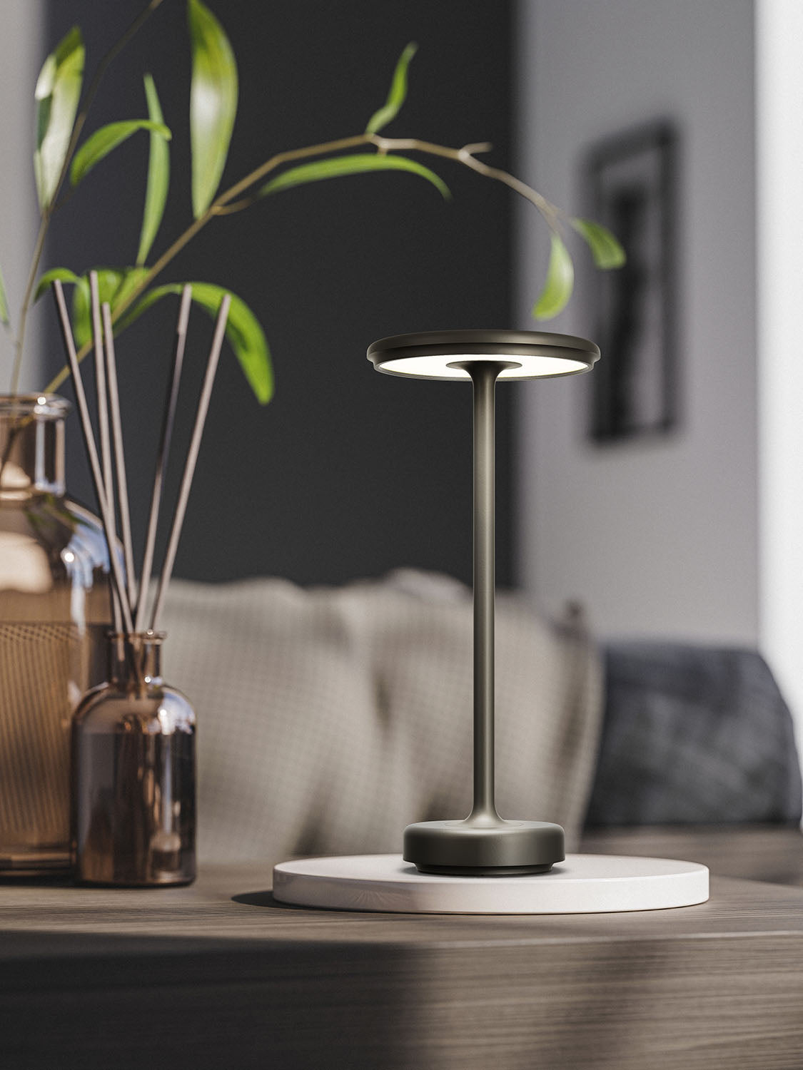 Bring refined elegance to your space with the Aera Touch – a cordless LED table lamp that blends minimalism with smart functionality. Its timeless silhouette and metallic finish add subtle sophistication to any interior, while the touch-sensitive control lets you adjust the lighting with ease.